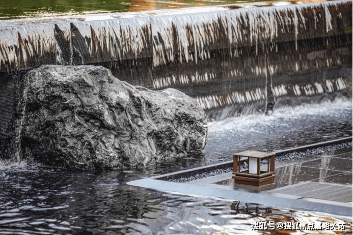 水景形态各异,有中心静水、三层跌水、点状涌泉、立面叠瀑、弧形流水五大不同呈现方式。水系的引入,让整个社区彻底灵动飘逸了起来。