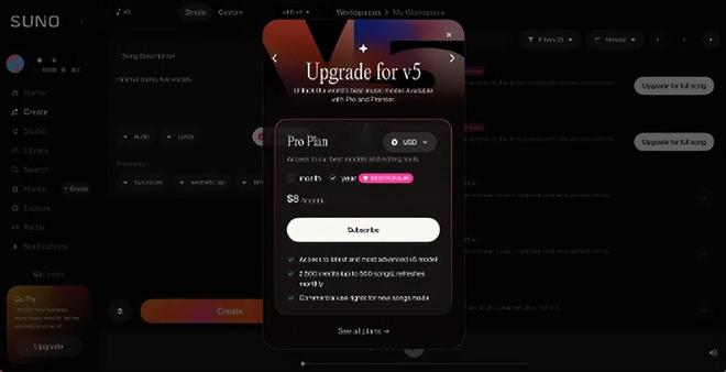 可国外Suno的专业版会员,每月8美元能生成500首,算下来每首才约0.11元。说白了,国内平台就是既怕担版权风险,又想分一杯羹,最后把压力全甩给创作者。